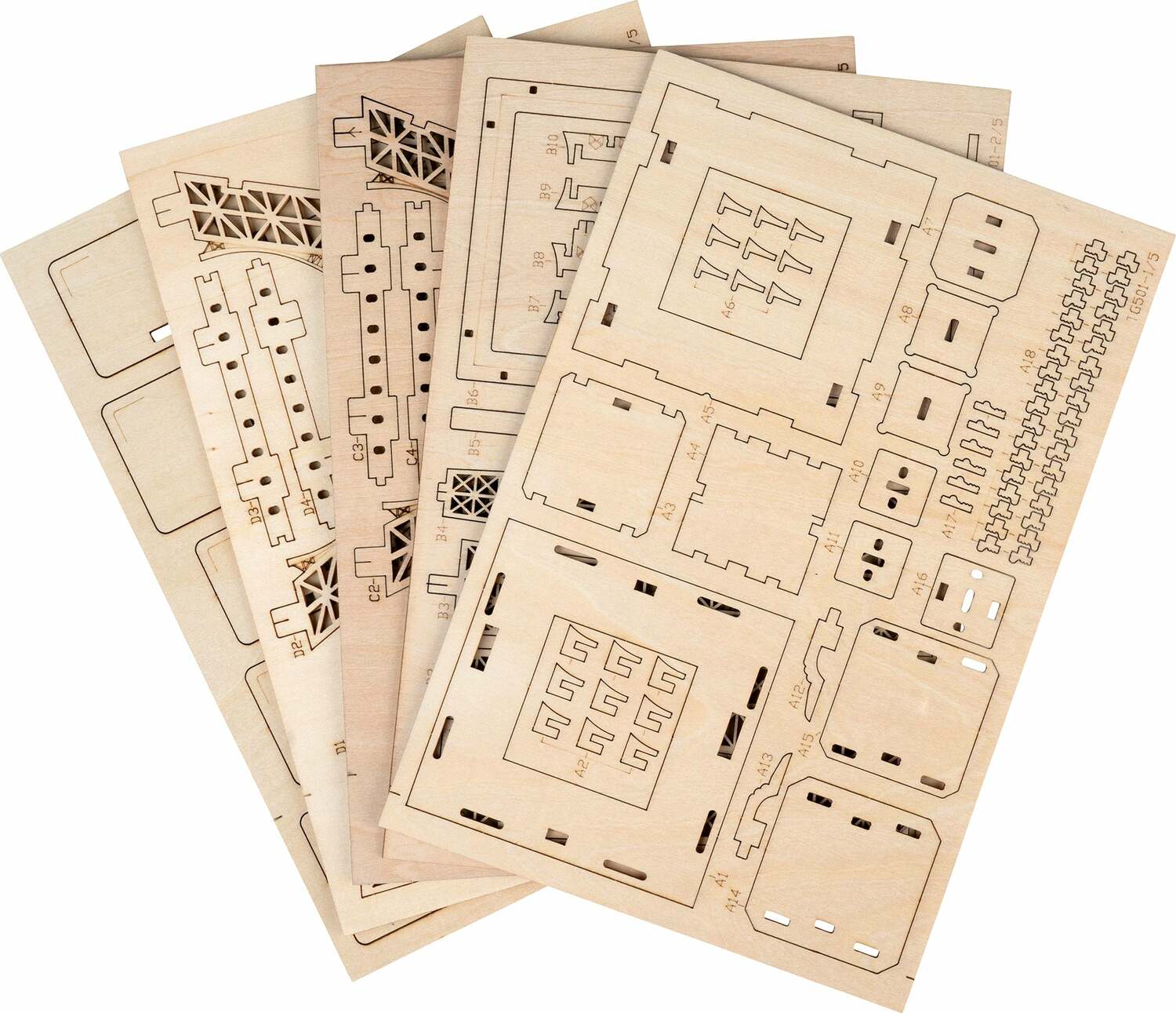 HIGH-QUALITY The pieces are laser-cut from non-toxic wood for a tight and precise fit. A piece of sandpaper is included to help pieces fit better. No additional tools or glue needed.