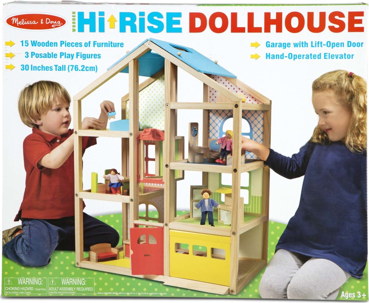 Going up? Suitable for all 1:12-scale dolls, our newest play house invites pretend-play families to pull into the garage, ride in the elevator, and feel right at home in this modern home. Fresh, gender-neutral colors and patterns add a lively edge to the natural-wood frame, and open sides make it easy to access every room with ease--so it's easy to share the fun with brothers, sisters, and friends! Comes with three play people and 15 pieces of furniture. Also available: Road Trip! Car & Pose-able Passengers Set, custom made to fit the ground-floor garage perfectly.